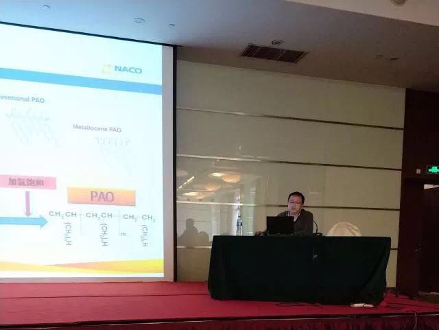 作為業內知名的技術專家——上海納克副總經理劉中文先生為大家講解了烷基萘的性能,以及PAO和烷基萘在潤滑油中的應用,其中著重介紹了納克最新的Nacoflow V系列超高粘度茂金屬PAO產品。劉總對各個產品的理化指標、性能特點及生產調配都進行了詳細闡述,讓大家全面了解到合成基礎油產品的優勢及其在柴機油等成品潤滑油中應用的經濟性。會上,部分參會企業代表就應用中遇到的難題提出疑問,劉總也與提問者進行了現場互動,為大家答疑解惑。
